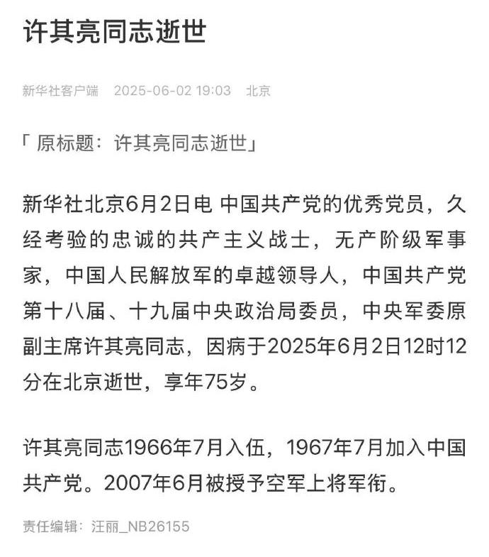 【6】许其亮同志逝世