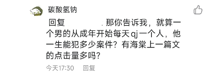 。?争端开始就是这男的硬说海棠文有社会危害性有人跟他理论结果就蹦出来这么句屁话。要证明海棠社会危害性更大是吧那我问你这俩是能拿来比较的吗