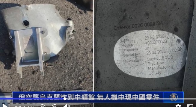 据新唐人电视台报道,乌克兰安全局周六(7月5日)宣布,在俄罗斯前一天空袭使用的“天竺葵”无人机残骸中发现了中国制零件。乌克兰将把这些零件作为证据展开调查。另外乌方也证实,俄罗斯的空袭破坏了中共驻敖德萨总领事馆的大楼。7月4日俄军使用“天竺葵”自杀式无人机,大规模空袭乌克兰后,乌克兰在无人机残骸中,发现来自中国“苏州爱科德精密仪器有限公司”制造的零件。“天竺葵”无人机为俄罗斯定制,与伊朗的“沙赫德-136”无人机同款。乌克兰外交部部长西比哈也指控 ,被发现的零件是在中国制造,最近才交付的。他在X社交平台发帖文说,这真是讽刺:在俄罗斯对敖德萨的空袭中,中共总领事馆的建筑也受到了轻微损坏。而中国零件出现在俄制无人机上,代表俄罗斯正不断扩展军事供应链,包括来自朝鲜的兵力、伊朗的武器以及中国的产品供应。苏州易可达精密制造有限公司,2025年5月23日生产,6月20日组装。而且是专门给俄罗斯生产的特供零件。——这种无上限的友谊,中共还能坚持多久?