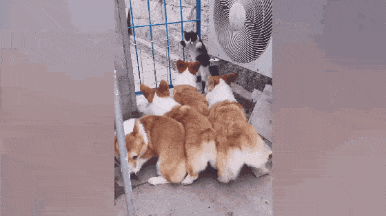 猫咪误入柯基群,一套猫拳全身而退