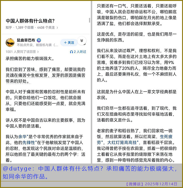 [微博谈 2025/12/14] 中国人群体有什么特点?