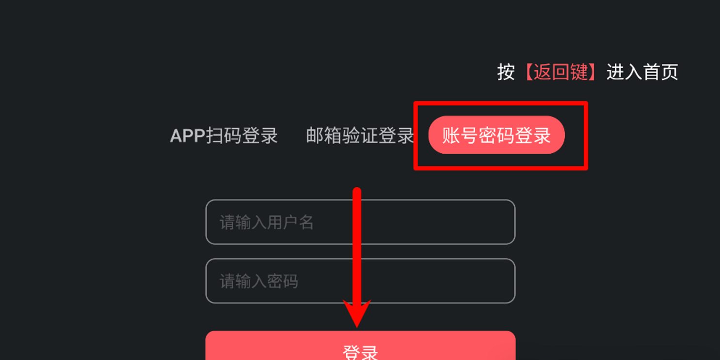 在登录界面,选择账号密码登录,然后直接点登录按钮即可