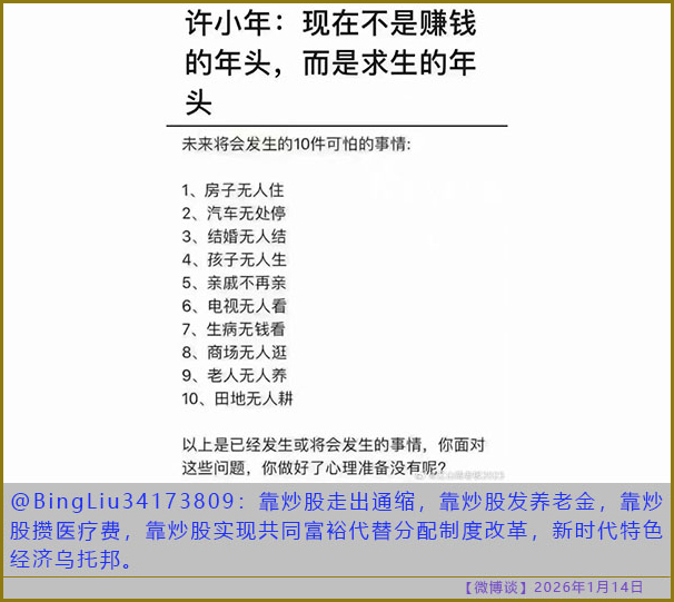 [微博谈 2026/01/14] 新时代特色经济乌托邦