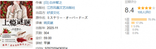 但是,作书中锁凶的证据链构建略显薄弱,更多依赖于加贺的“气场”迫使凶手自白,这一处理削弱了前期的本格推理氛围,令人略感失望。