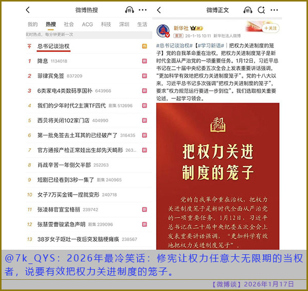 [微博谈 2026/01/17] 越是鼓励,越是没人生